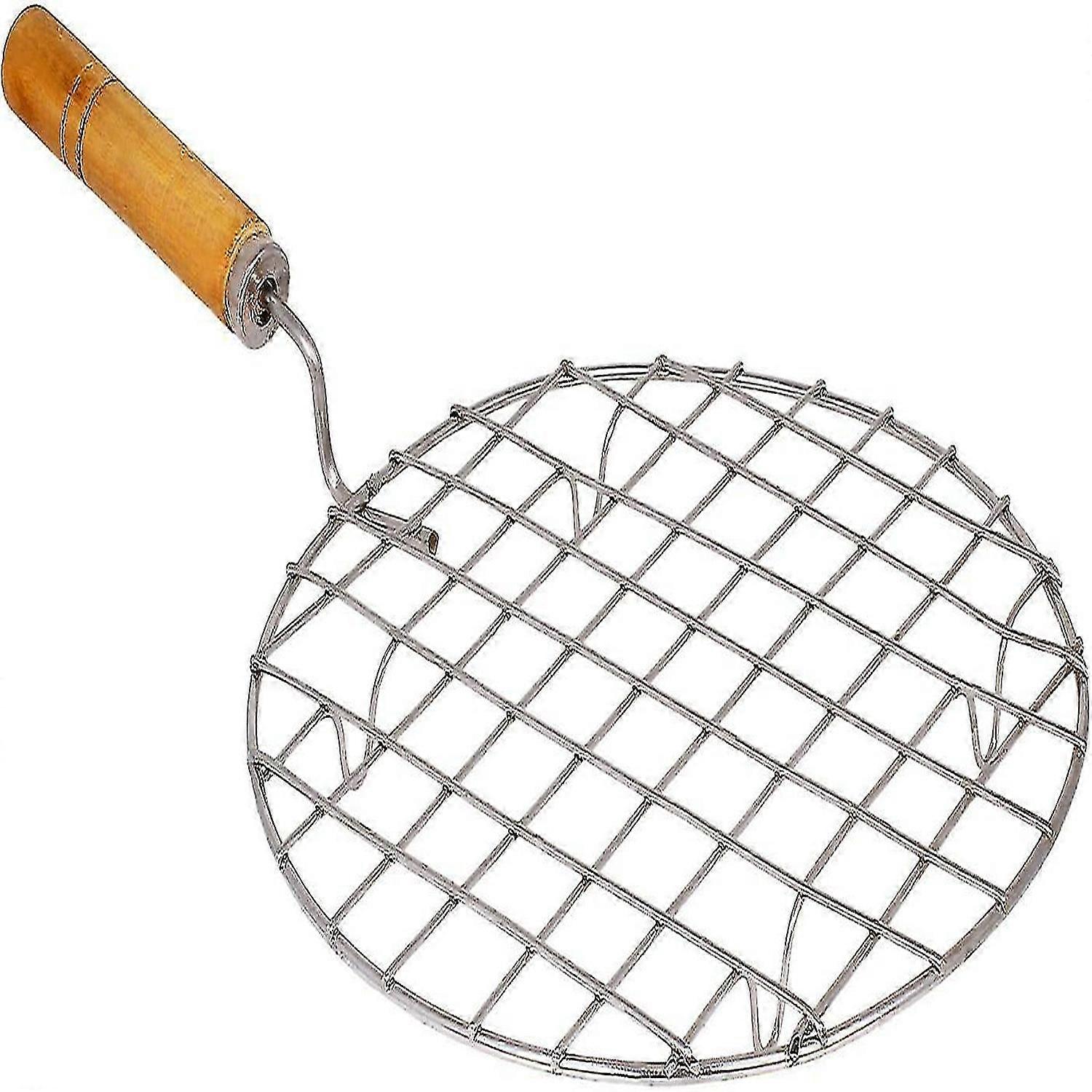 Stainless Steel Round Wire Roaster Rack/papad Jali/roti Grill Round Shape With Wooden Handle