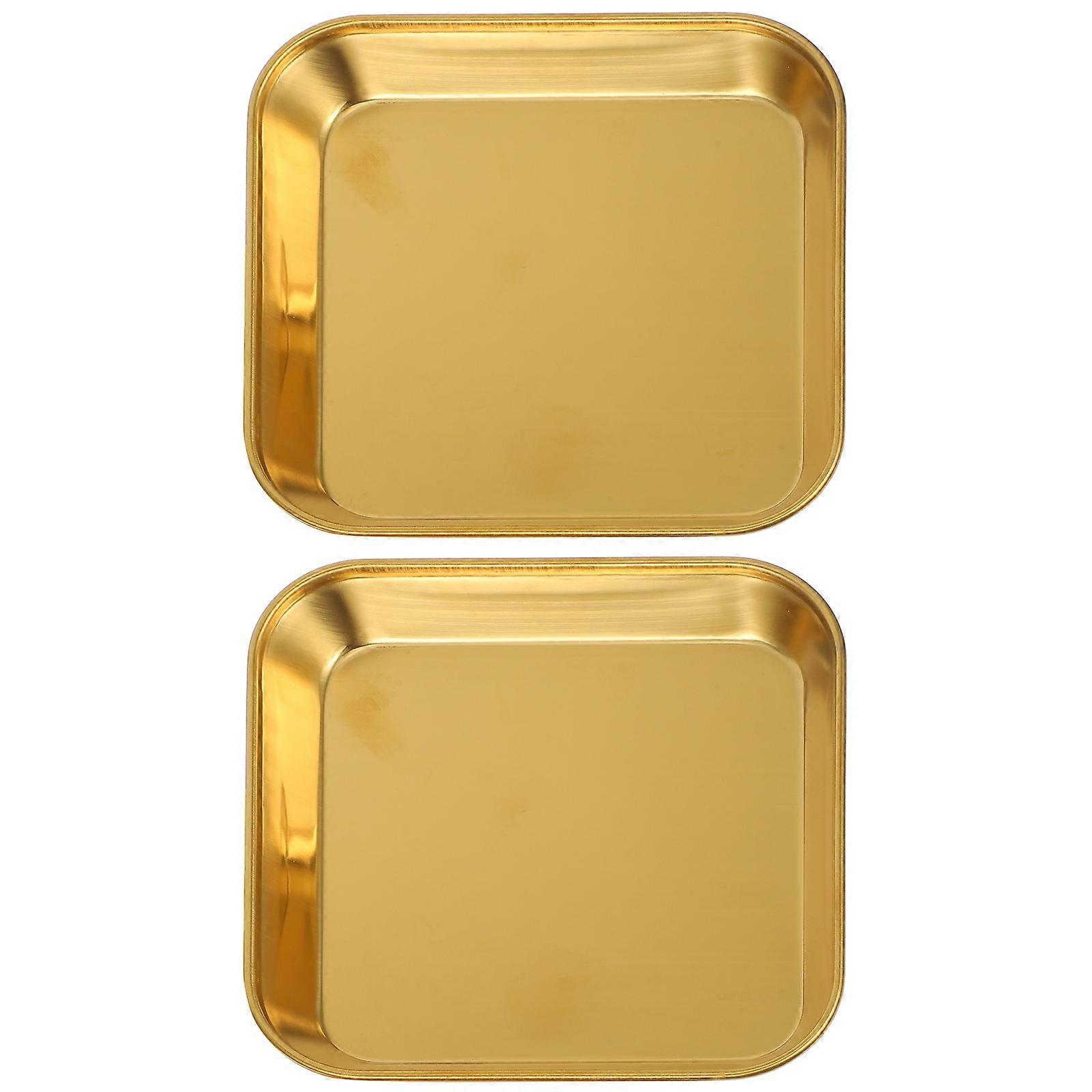 Stainless Steel Food Tray Dinner Plates Metal Food Trays Appetizer Dish Steak Pan Cookie Dessert Salad Platter Small Square Tray For Home Dining 2Pcs
