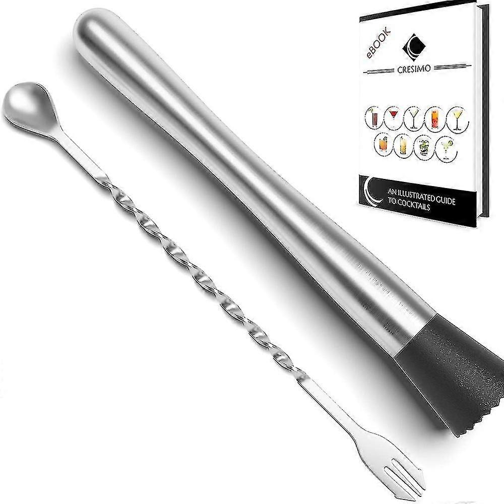 Stainless Steel Cock Tail Muddler And Mixing Spoon With Cocktail Recipes Book