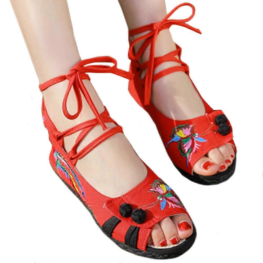 It doesn't pursue fashion but is unique;wear individual grade,conveny inner literary and freshness.Its vintage and fashionable emboridery and small peony and China flower pattern,red is ardent and black is sober;asymmetric edge design shows freedom and vintage;classic plate button design weaves unique smell. Delicate embroidery,colorful string overlap,juxtapose and intervain produces flamboyant but not vulgar color effect;the blent color of dark and light has Chinese painting's render effect;it uses top grade material,color is staid and simple,like go through time's baptism,showing perfect literary smell;it comforms to human engineering,it is comfortable and protects the feet. Wearing it is like going through thousand years time,eyesight like wave,smile like flower,moving step like lotus. Features: pure natural canvas,with little stimulus to the skin,abosorbs sweat and ventilate,is soft and close to the skin,super ventilated and super refreshingsoft inner design,classic superior linen material,ventilate and is close to the skinvintage shoelace,elegant,beautiful and decentcotton string embroidery,perfect and delicatecowhell shoe sole,anti-skidding and comfortable,wear ressitant and durable Specifications: vamp material:pure cotton canvassole material: rubberinner material: clothstyle: nationalfashionable element:platform,flower,hollow,cross bandage,motley, bandagetoe cap shape: peep-toeupper height: lowheel shape: flatheel height:low(1-3cm) pattern: animalsuitable season:spring,summer, autumncolor:red, blacksize:35,36,37,38,39, 40weight:350g keyword:old beijing cloth shoes,cloth shoes,embroidered shoes,cowhells sole,national style