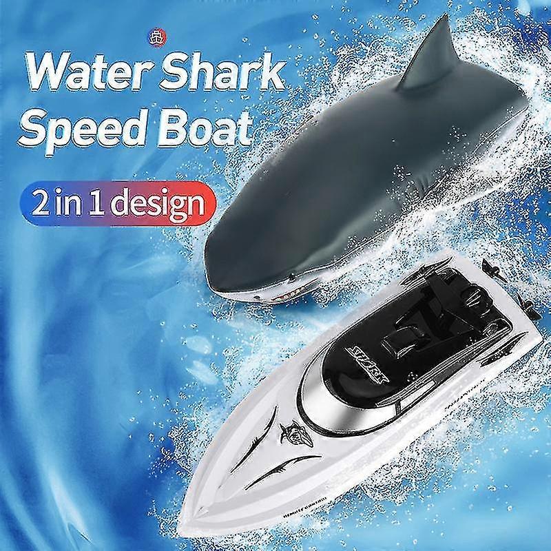 Shark remote control boat two-in-one remote control boat toy new summer toy remote control shark boat The best choice for birthday gifts, Halloween gifts, Thanksgiving gifts, Christmas gifts, he will definitely make your children happy all day long Product name: remote control shark boat Product size: 25*15*8(cm) Use time: about 20 minutes Charging time: 80-90 minutes Remote control distance: about 30-50 meters Remote control battery: 2*AA1.5V dry battery (not included) Remote control boat color: white shark color Product accessories: shark shell*1, remote control boat*1, remote control*1, 1USB*1 tail rotor*2 pcs manual*1 3.7V 650mAh lithium battery*1