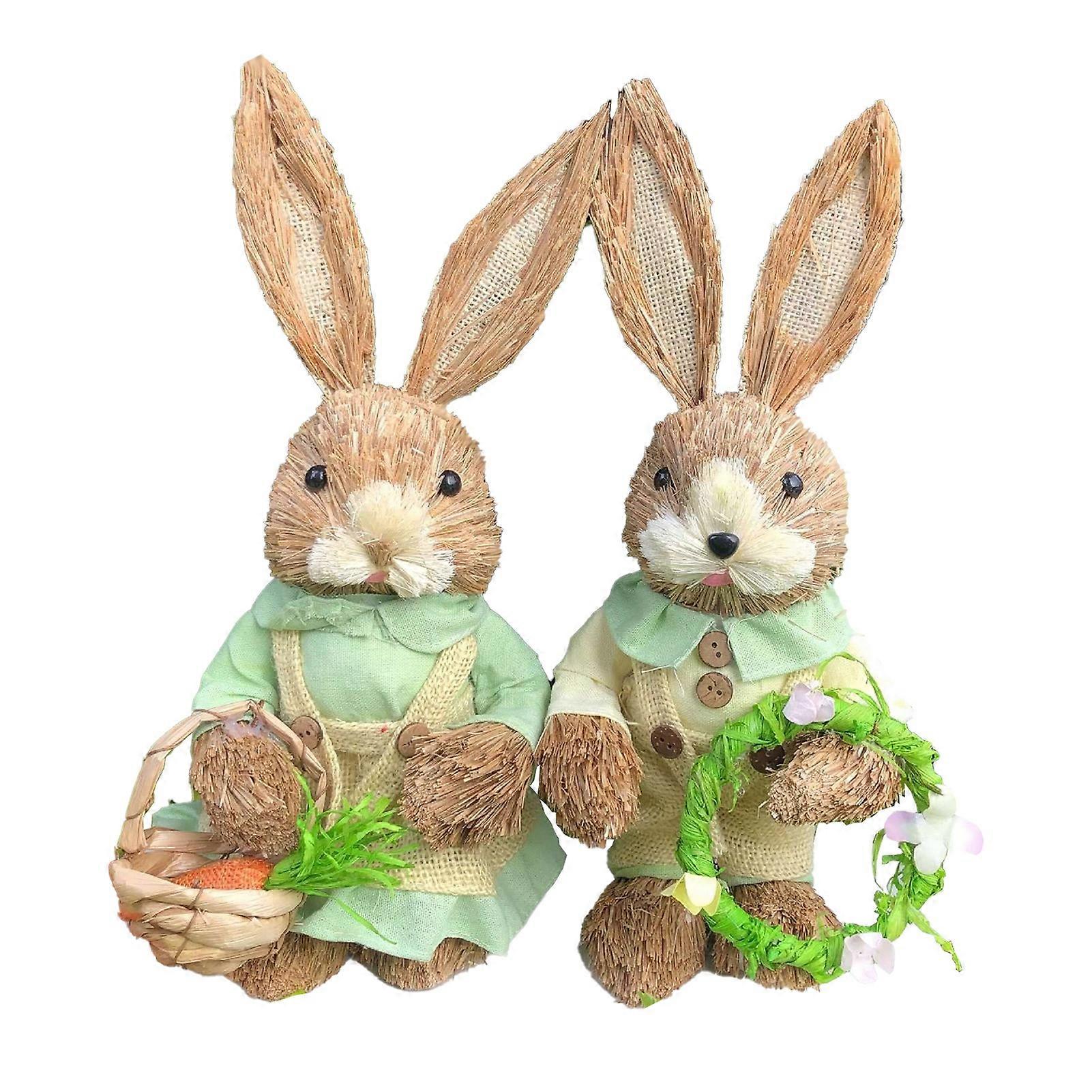 Straw Bunny Couple Cute Vintage Rabbit Ornament Handmade Straw Rabbit Figurine For Home Stage Store Decoration
