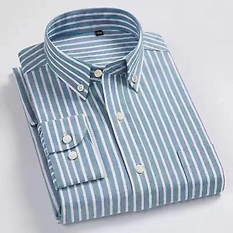 القطن أكسفورد قميص للرجال طويلة الأكمام منقوشة مخطط القمصان عارضة ذكر جيب العادية تناسب زر أسفل العمل رجل قميص