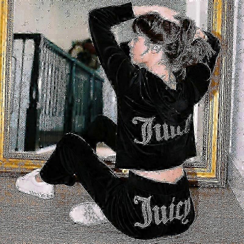 Velour Juicy Sewing Suit Hoodies Velvet Zipper Sweatshirt And Pants Set Sportswear 2024 Women's Spring/fall Tracksuit Crop