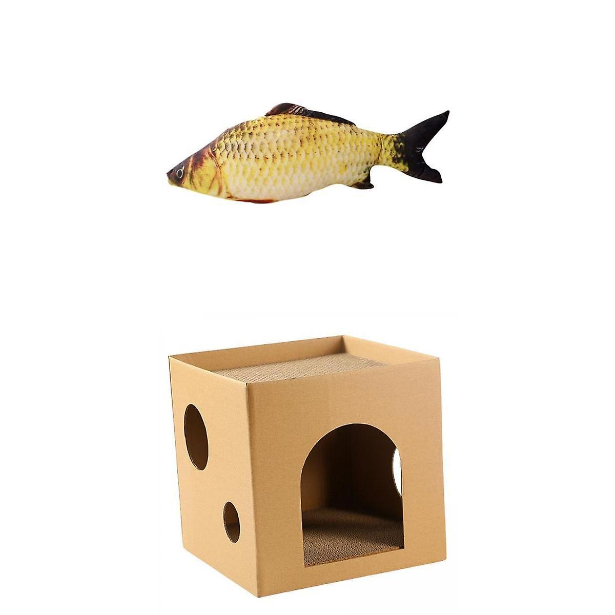 Cat Corrugated House Hide Out Kitty Condo Castle Play House Toy Mat