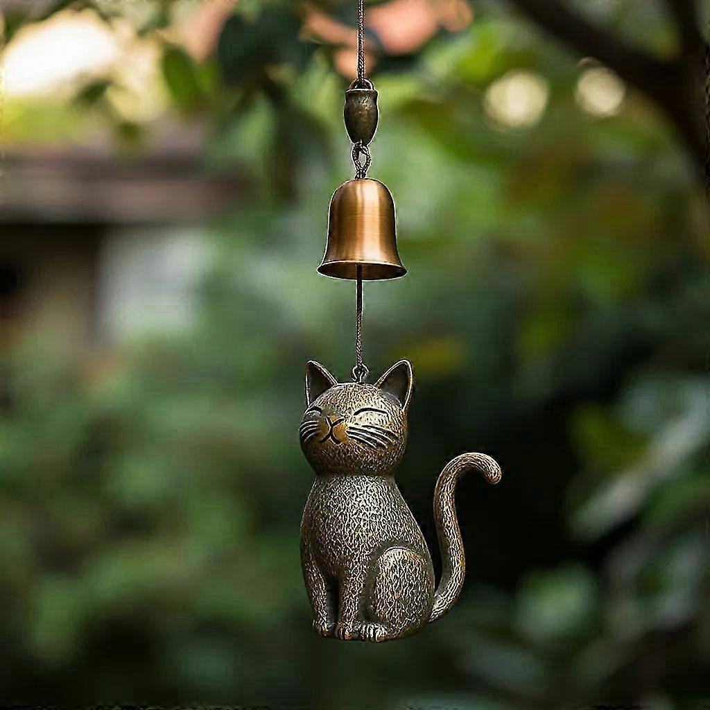 Cat Wind Chime Unique Cat Garden Decor Outdoor Cat Statue Themed Gifts Wind Chimes for Cat Lovers Wo