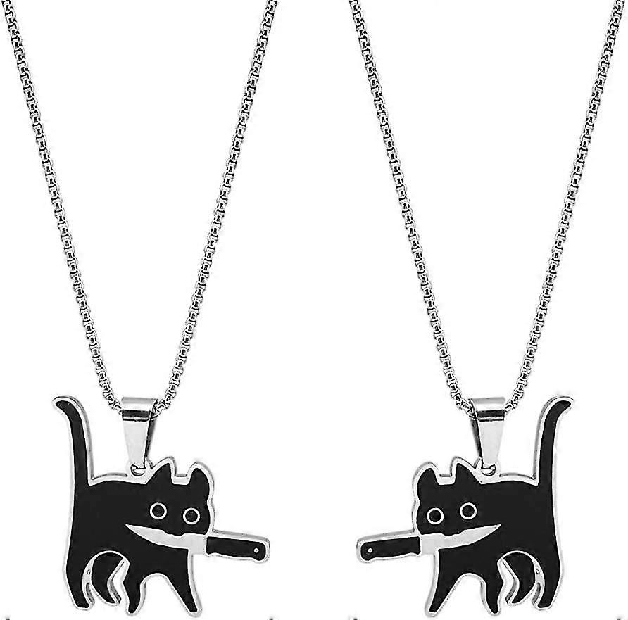 Cat Necklace, Black Killer Cat Pendant, Kitten With Knife, Cute Cat Kitty Necklace For Women, Cute Animal Pendant Necklace Gifts