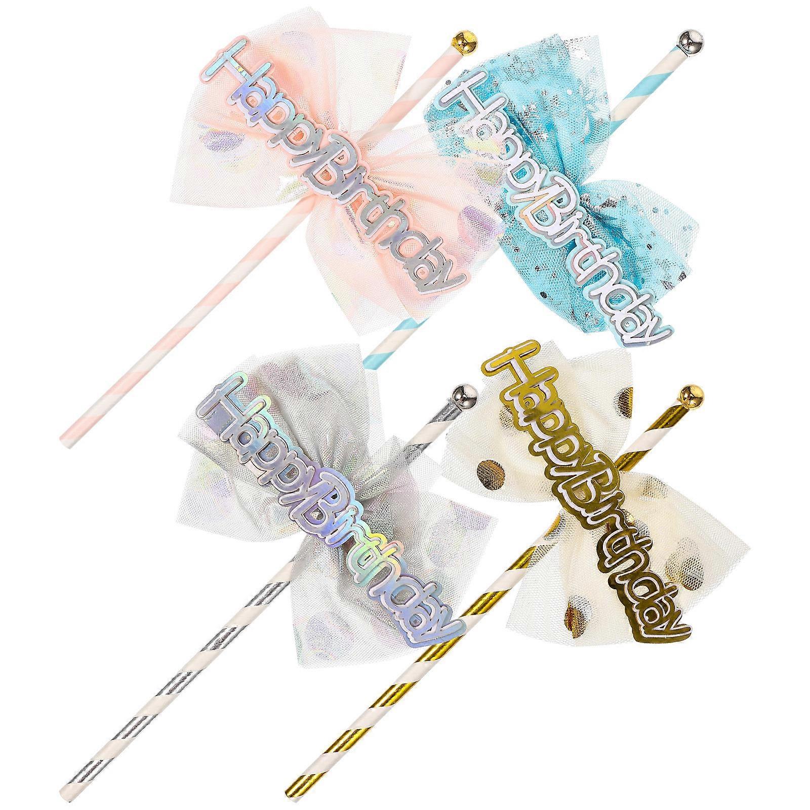 Bow Cupcake Toppers For Birthday Cakes And Celebrations 20X12.5CM Fun Party Decor 4Pcs