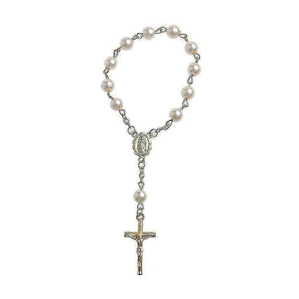 Catholic for Cross Finger Chain Mini Rosary Finger Baptism Rosaries Faux Pearls Bracelet for Baptism Favors Christening