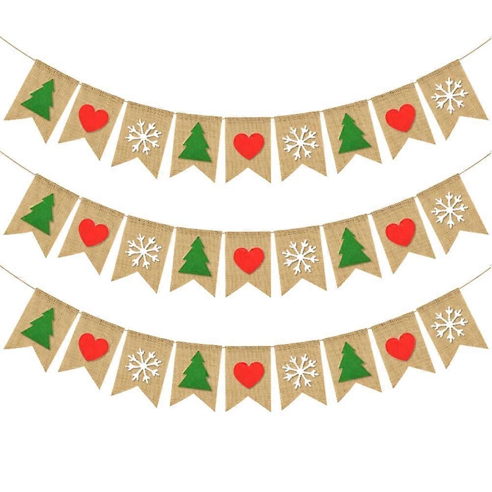 Linen Christmas Banner for Decoration Assorted Color Perfect for Party Photo Prop 2 Sets
