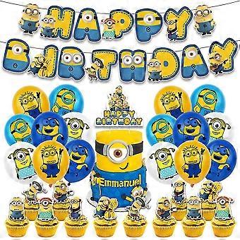 Cartoon Minions Themed Kid Boys Girls Birthday Party Supplies - 30 Pcs Birthday Party Favors Banner Cake Topper Cupcake Topper Balloons