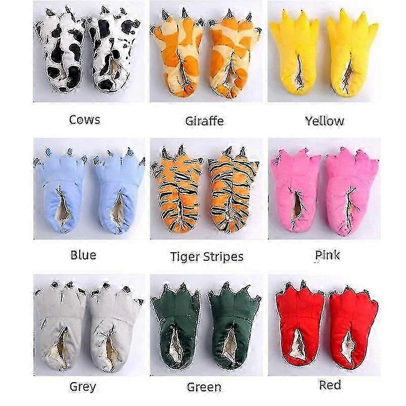Cartoon Animal Paw Slippers Winter Funny Monster Dinosaur Claw Soft Plush Warm Indoor Floor Cotton Shoes For Men Women Kids