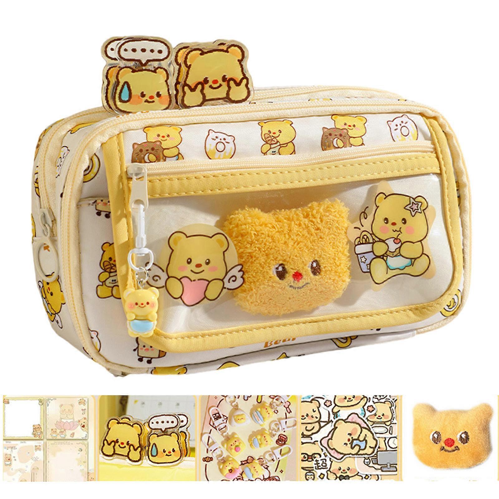 Cartoon Bear Pen Case with Note Paper, Stickers, Keychain, Paper Clamp Large Capacity Pen Bag Pencil Pouches for Student