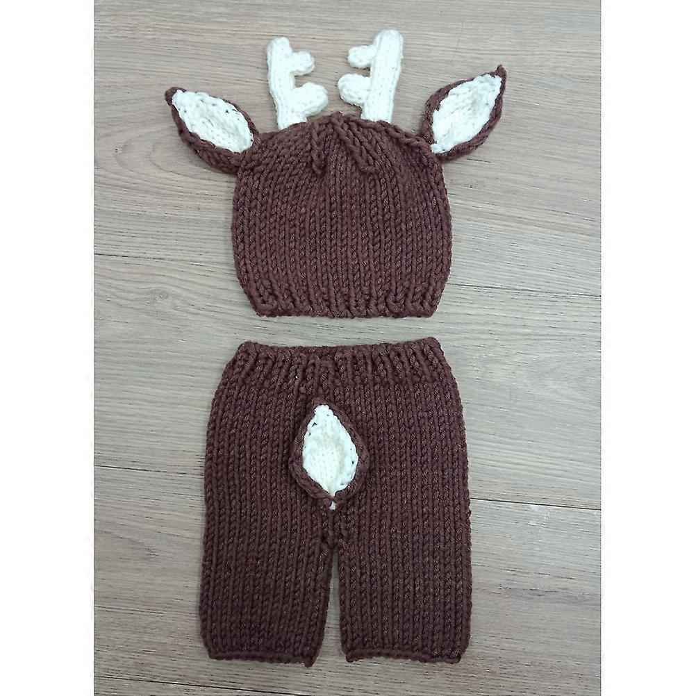 Cartoon Baby Outfit Knitted Deer Outfits Infant Clothing Dark Brown Unisex Design Photography Props 1Set