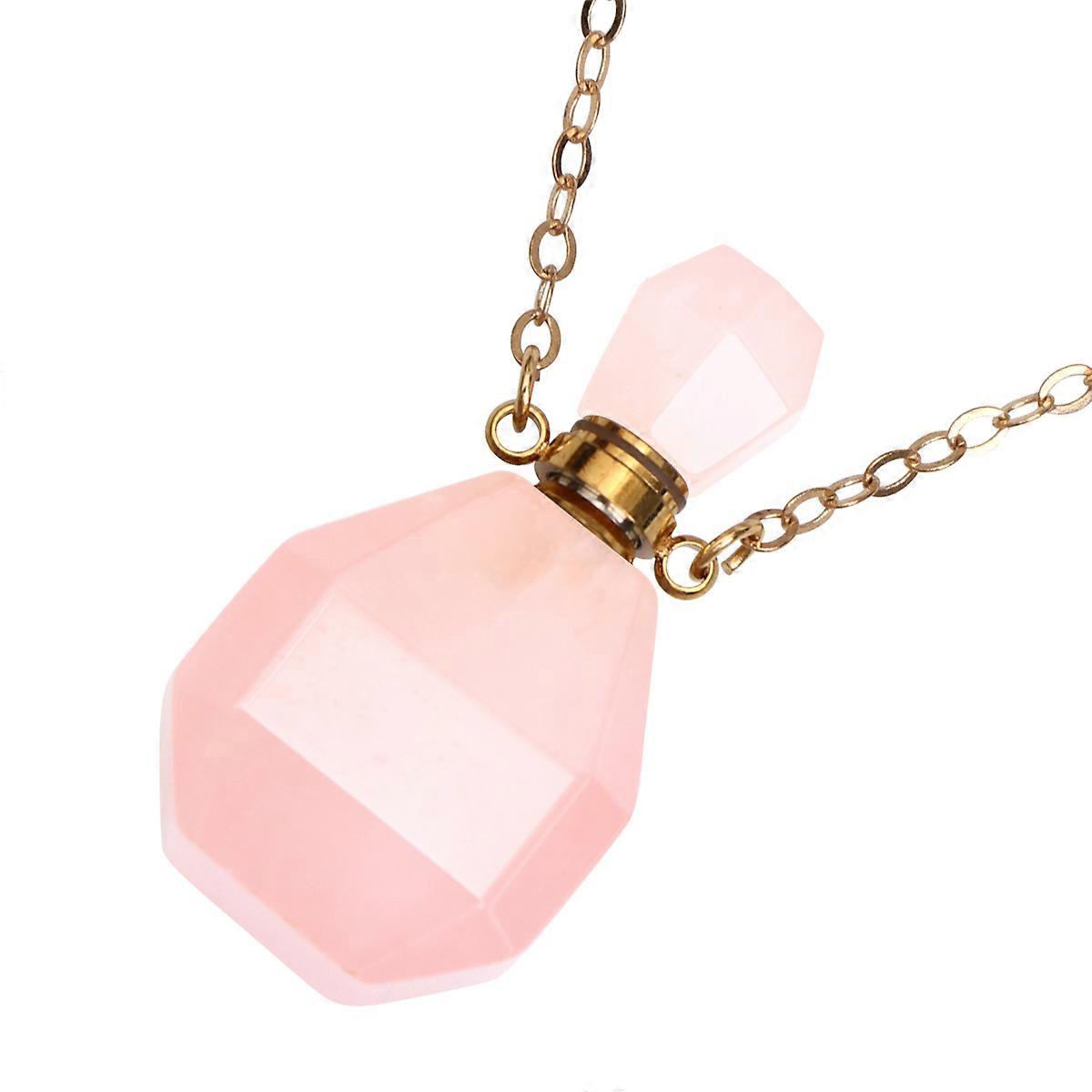 Natural Crystal Fluorite Wishing Bottle Perfume Essential Oil Bottle Pendant Necklace Accessories Colorful Hanging Container (Pink, with Metal Chain)