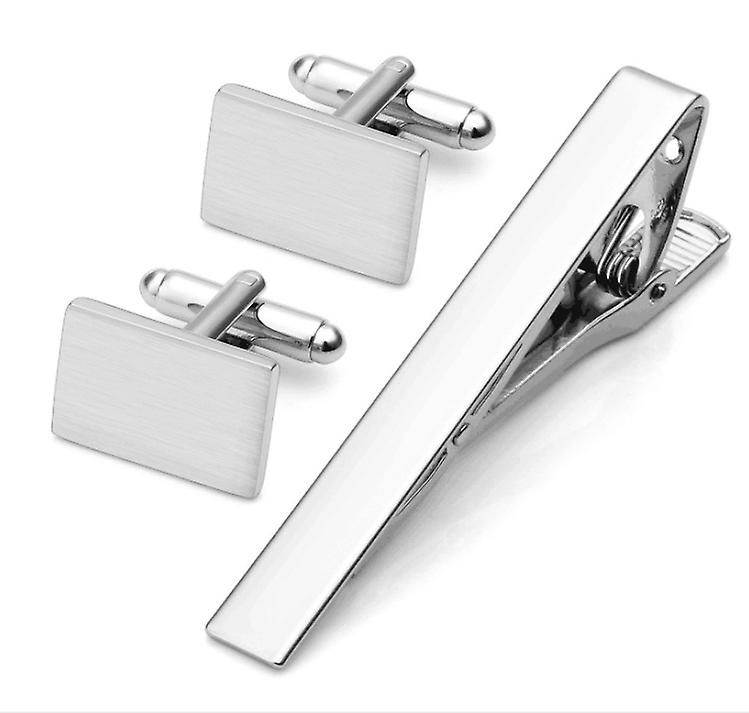 Cuff-link Box Man Tie Clasp Clip Pin Shirts Business Office Marriage Jewelry Stainless Steel3pcssilver