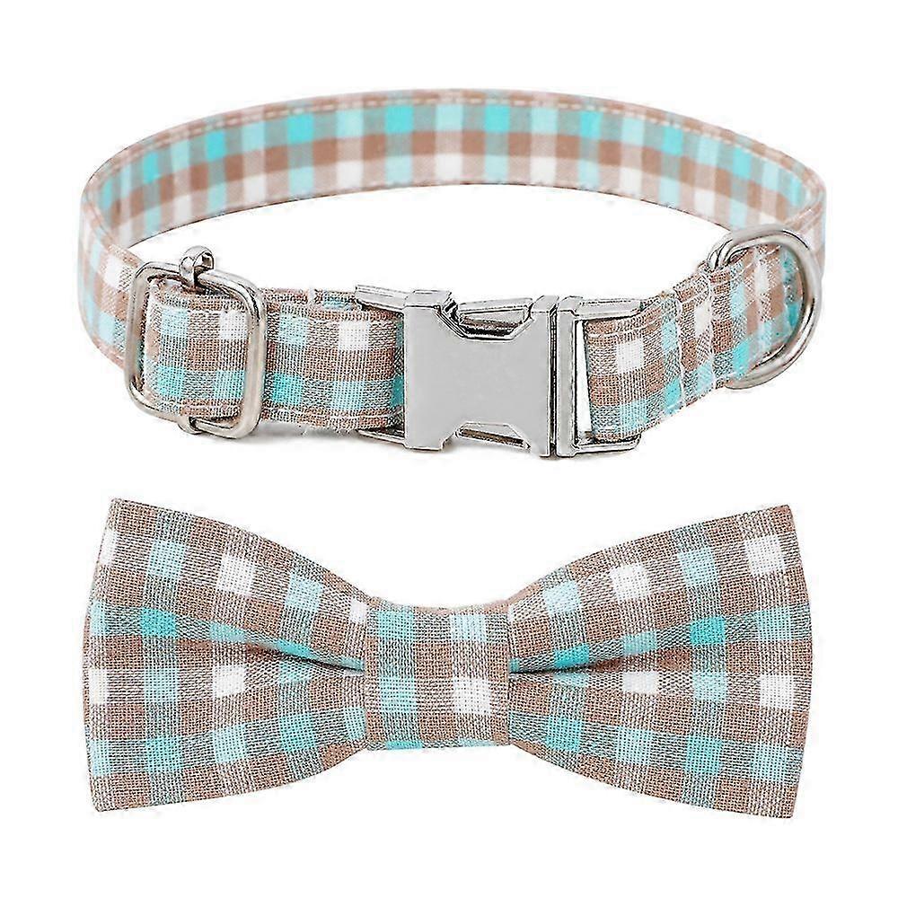 Dog Circle Pet Bowknot Plaid Pet Collar Cotton Alloy Buckle Dog Collar