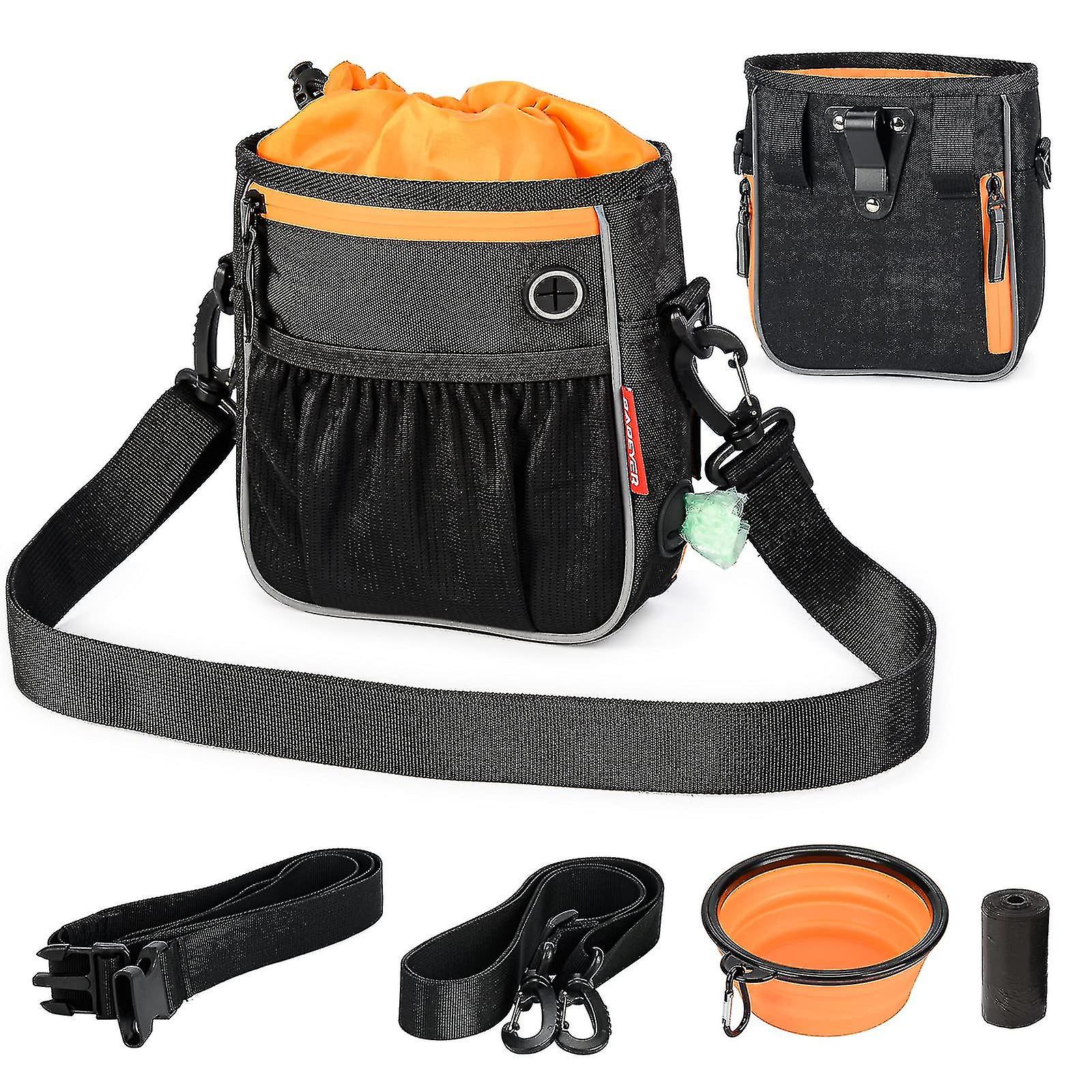 Dog Treat Pouch Bag, Dog Walking Bags Carry Kibble Snacks Toys For Dog Training Reward, Black