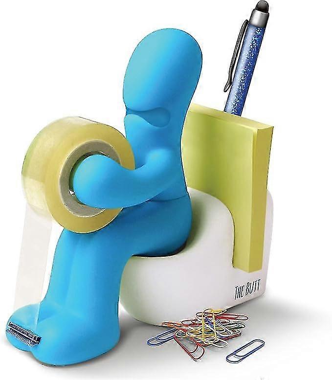 The Butt Station Office Supplies - Fun Tape Dispenser - Fun and Cool Office Accessory Holder with Tape Roll, Paper Clips, (Blue)