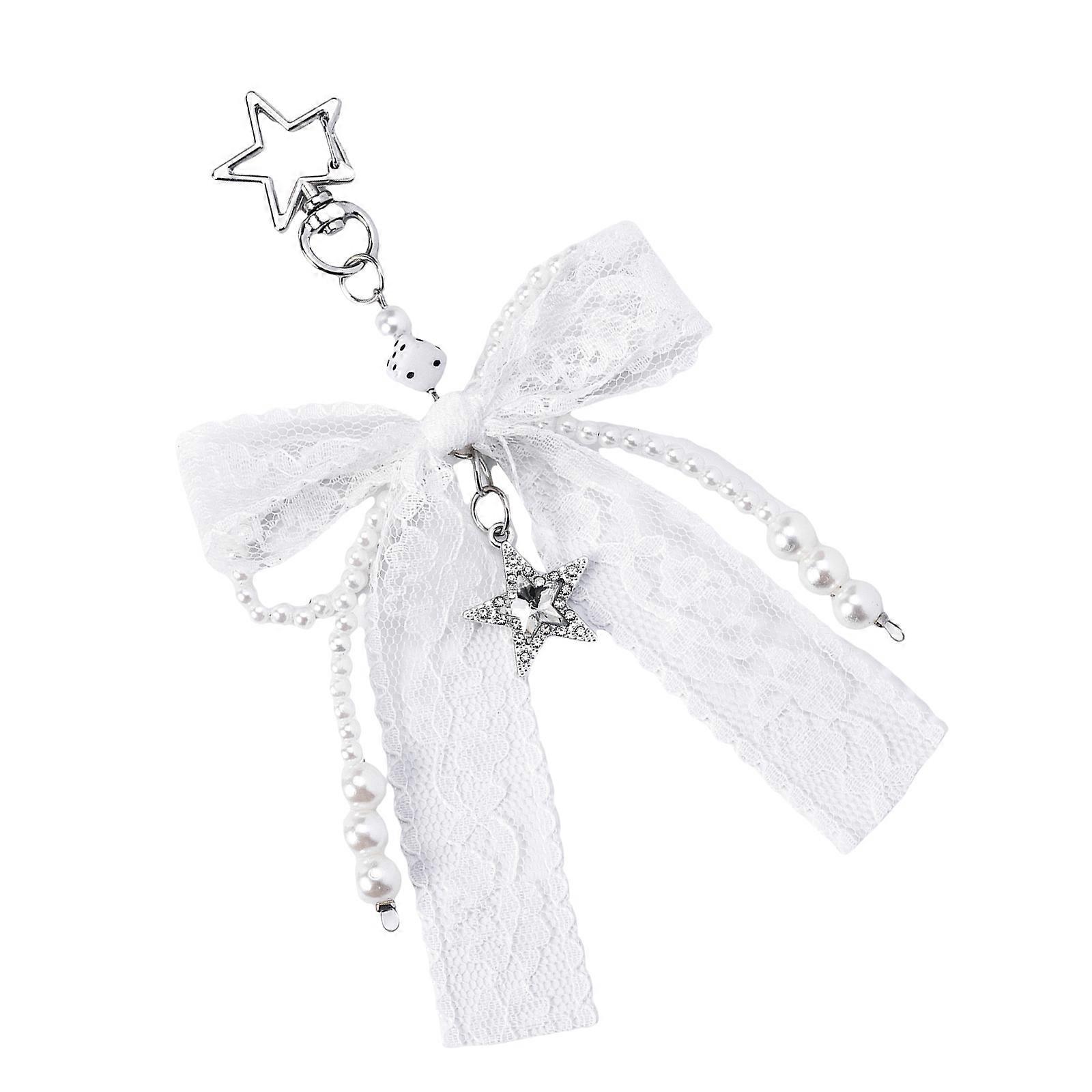 Pearls Bows Bag Charm Pendant Aesthetic Purse Charms Aesthetic keychains Keyring for Women Backpack Purse Handbag Decors White