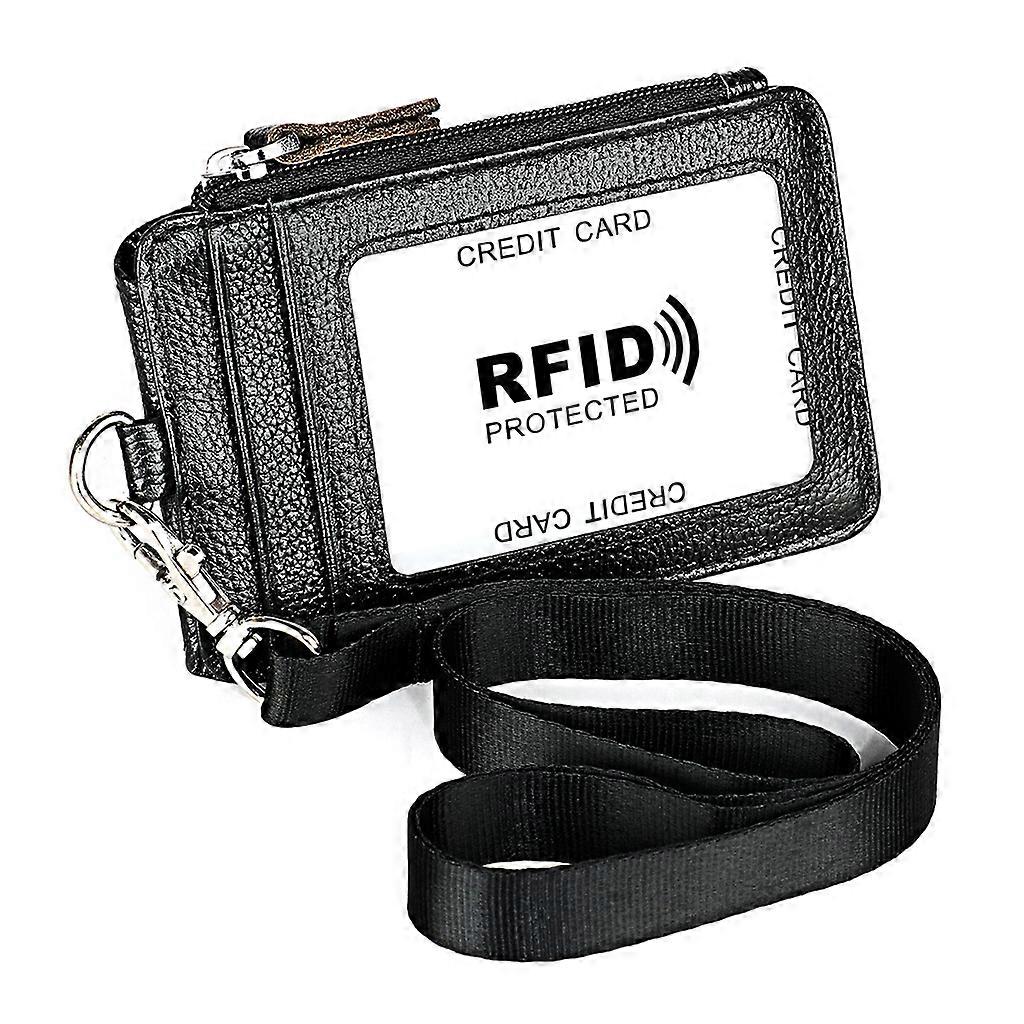 Portable Genuine Leather RFID Blocking Business ID Card Credit Holder Lanyard Pu