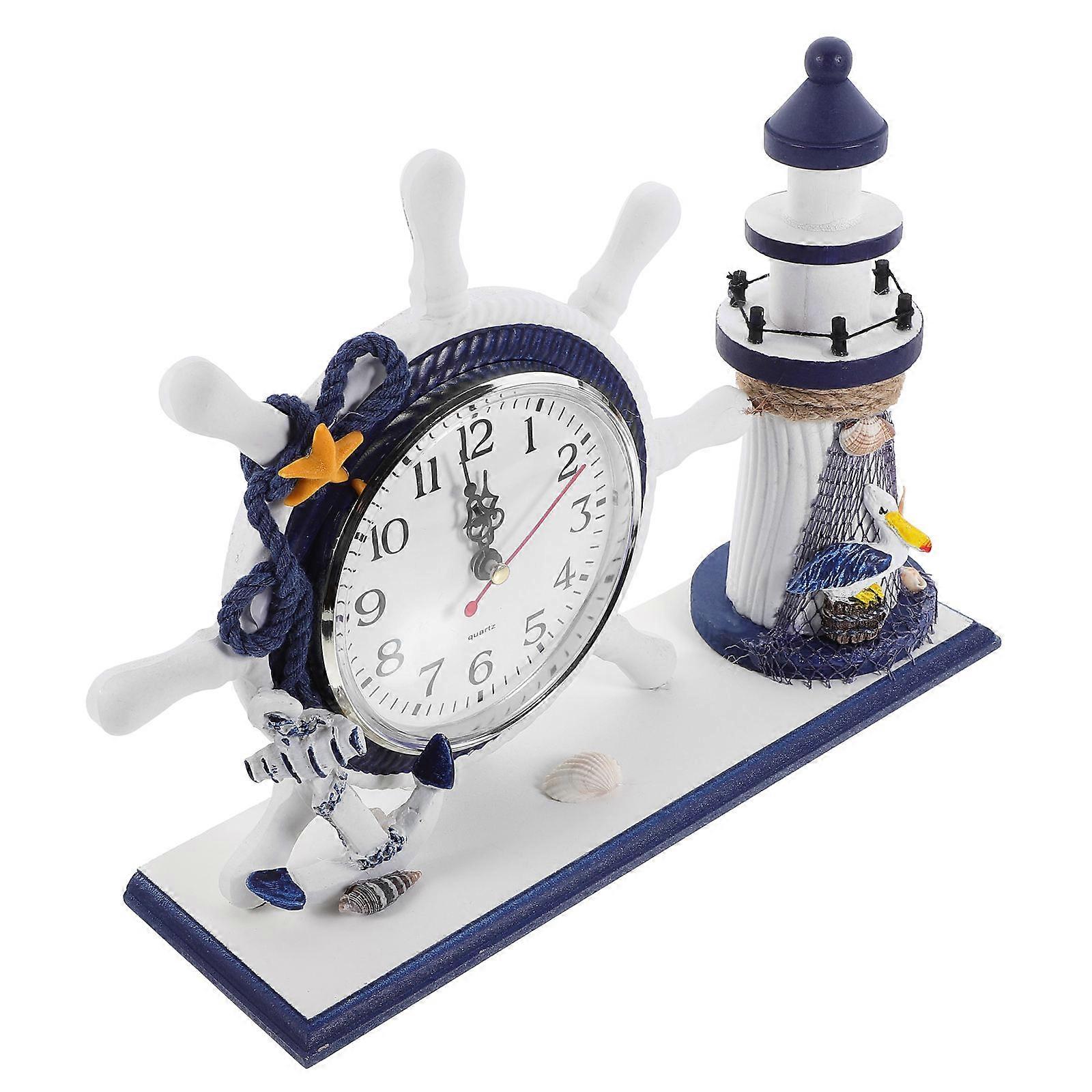 Ocean Style Lighthouse Clock Desktop Ornament Wooden Decor with Photo Frame Mediterranean Seaside Design for Home Office