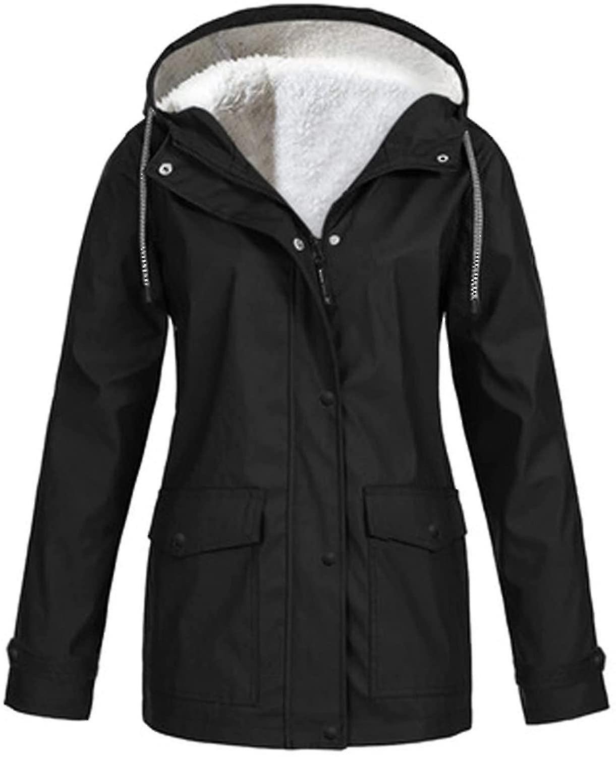 Women's Lined Fleece Rain Jacket Winter Outdoor Waterproof Hooded Raincoat Ladies Snow Warm Ski Jackets Solid Color