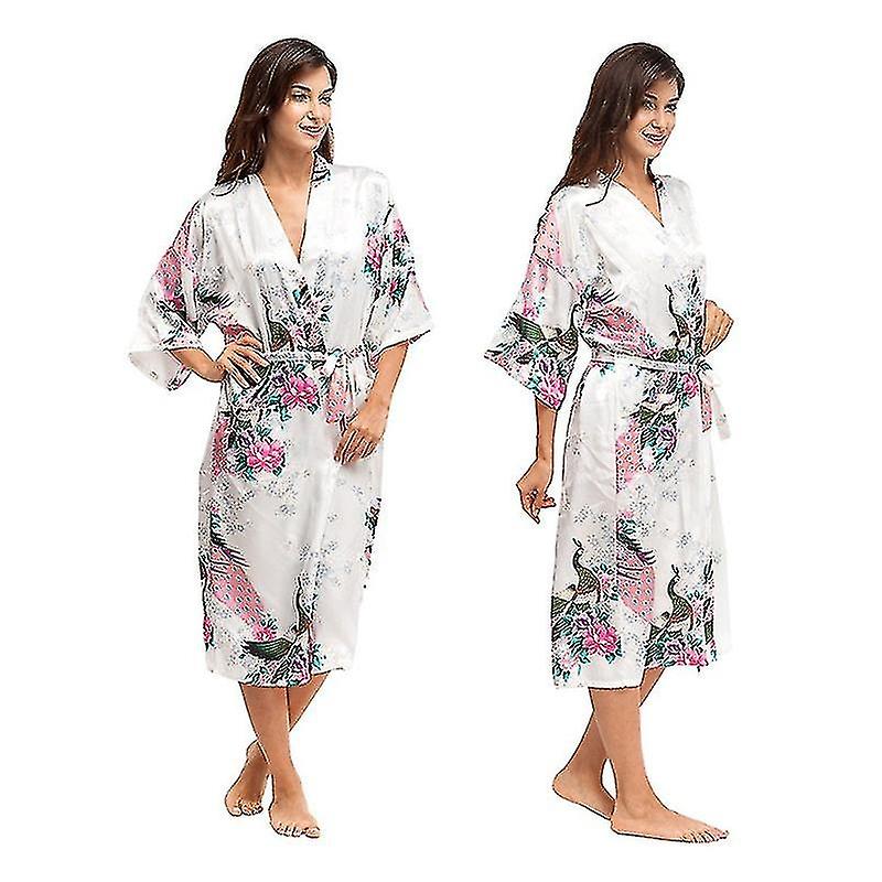 Womens Floral Printed Soft Satin Kimono Dressing Gown Wedding Bathrobe Sleepwear NVT