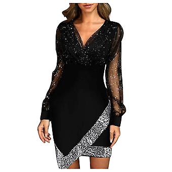 Women Sequined Dress Retro Elegant V Neck Sexy Dress For Cocktail Party Nightclub
