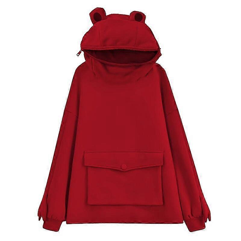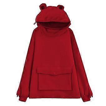 Women Novelty Frog Hoodie Cute Long Sleeve Solid Color Hooded Sweatshirt With Flap Pocket Lazy Style Simple Coat
