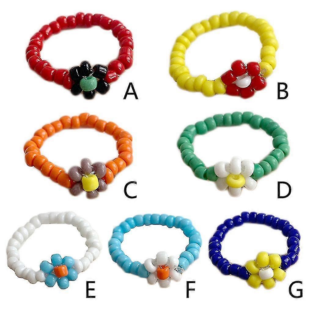 Women Candy Color Floral Elastic Finger Ring Boho Beaded Stretch Acrylic Jewelry