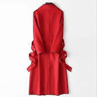 Women Autumn Winter Woolen Coat Lapel Long Sleeve Slim Fit Coat with Belt Solid Color Mid calf Length Overcoat