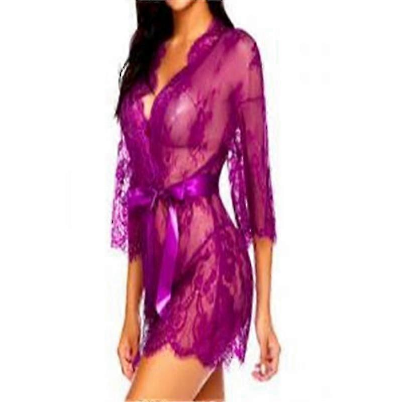 Women's Lace Kimono Robe Babydoll Lingerie Mesh Nightgown