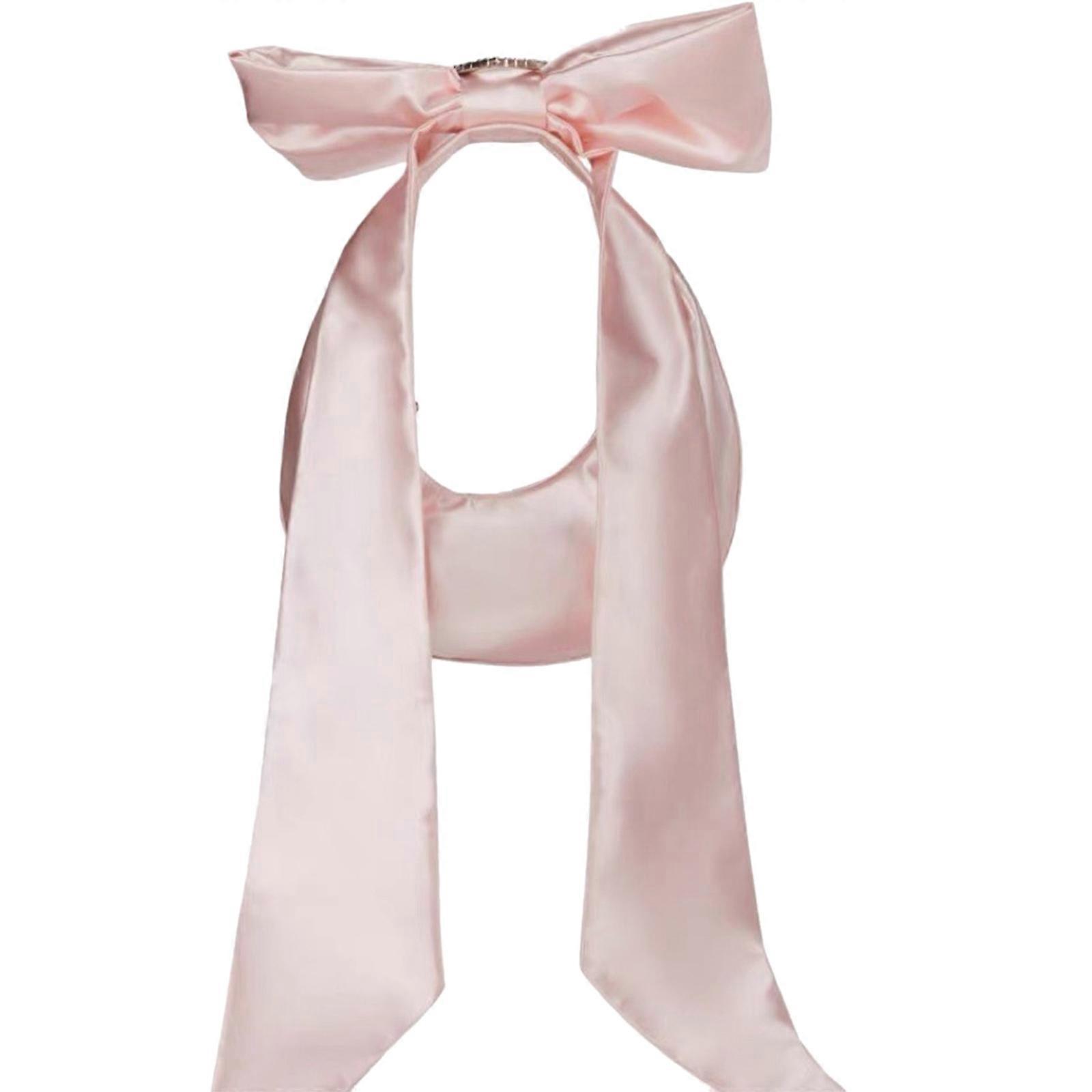 Women Satins Bows Shoulder Bag Simple Moon Bag Stylish Armpit Bag Handbag and Purse Female Underarm Bag Pink