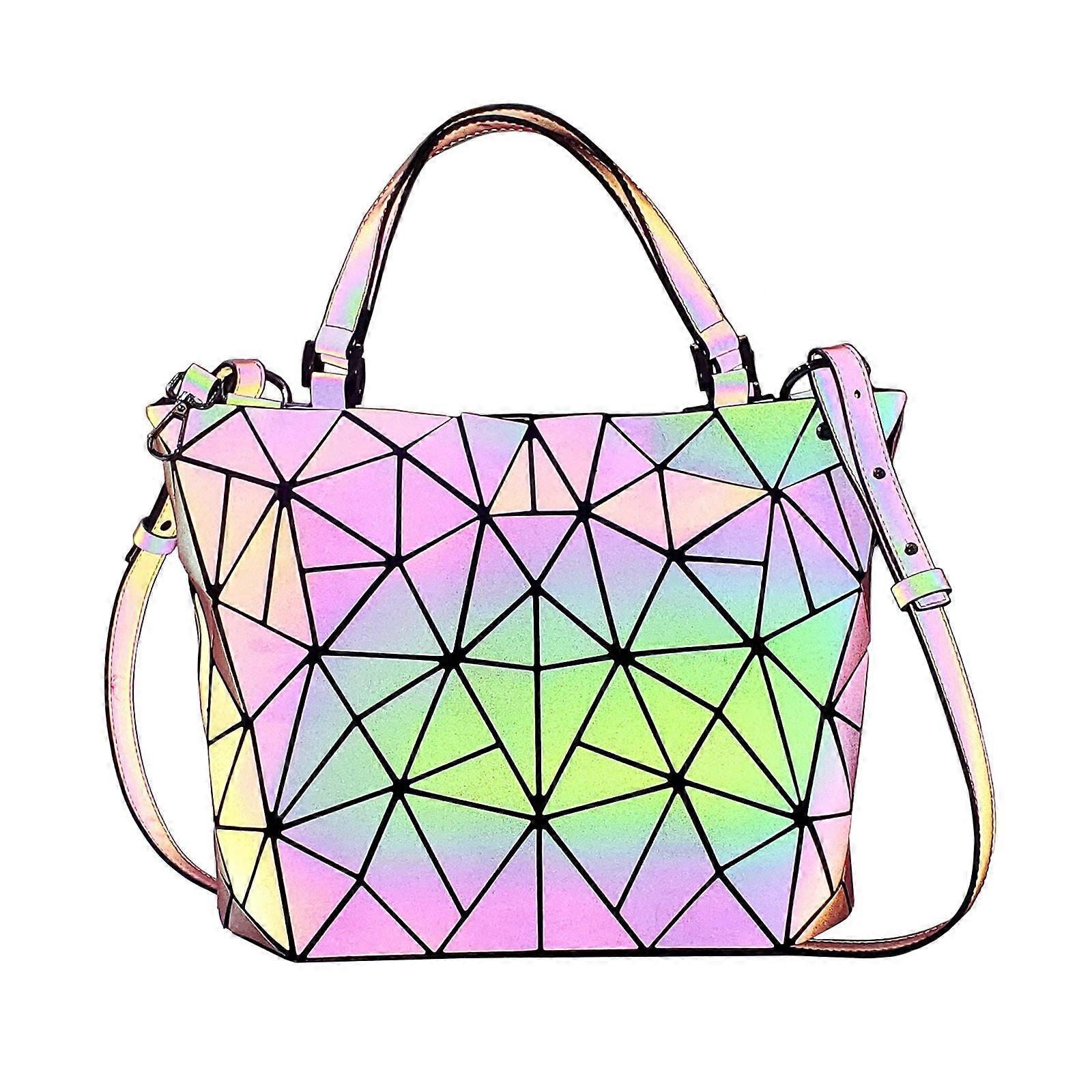 Women Ladies Handbag Color Luminous Diamond Pattern Bag Large Capacity Waterproof Shoulder Bag