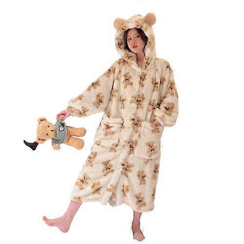 Women's Winter Pajamas Long Section Bear Warm Home Clothes Set