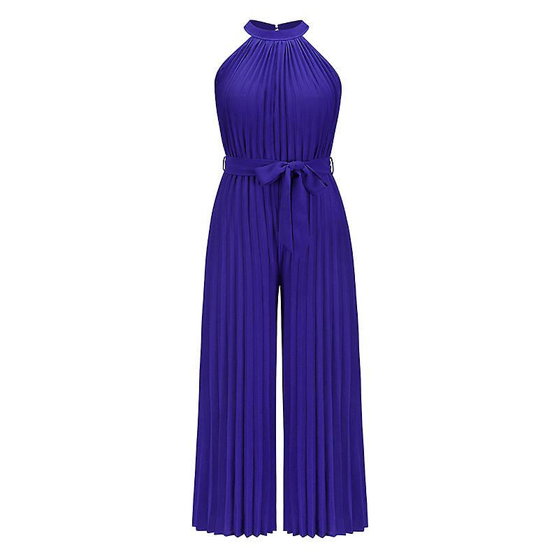 Women Summer Halter Neck Sleeveless Pleated High Waist Wide Leg Pant One Piece Jumpsuits Romper