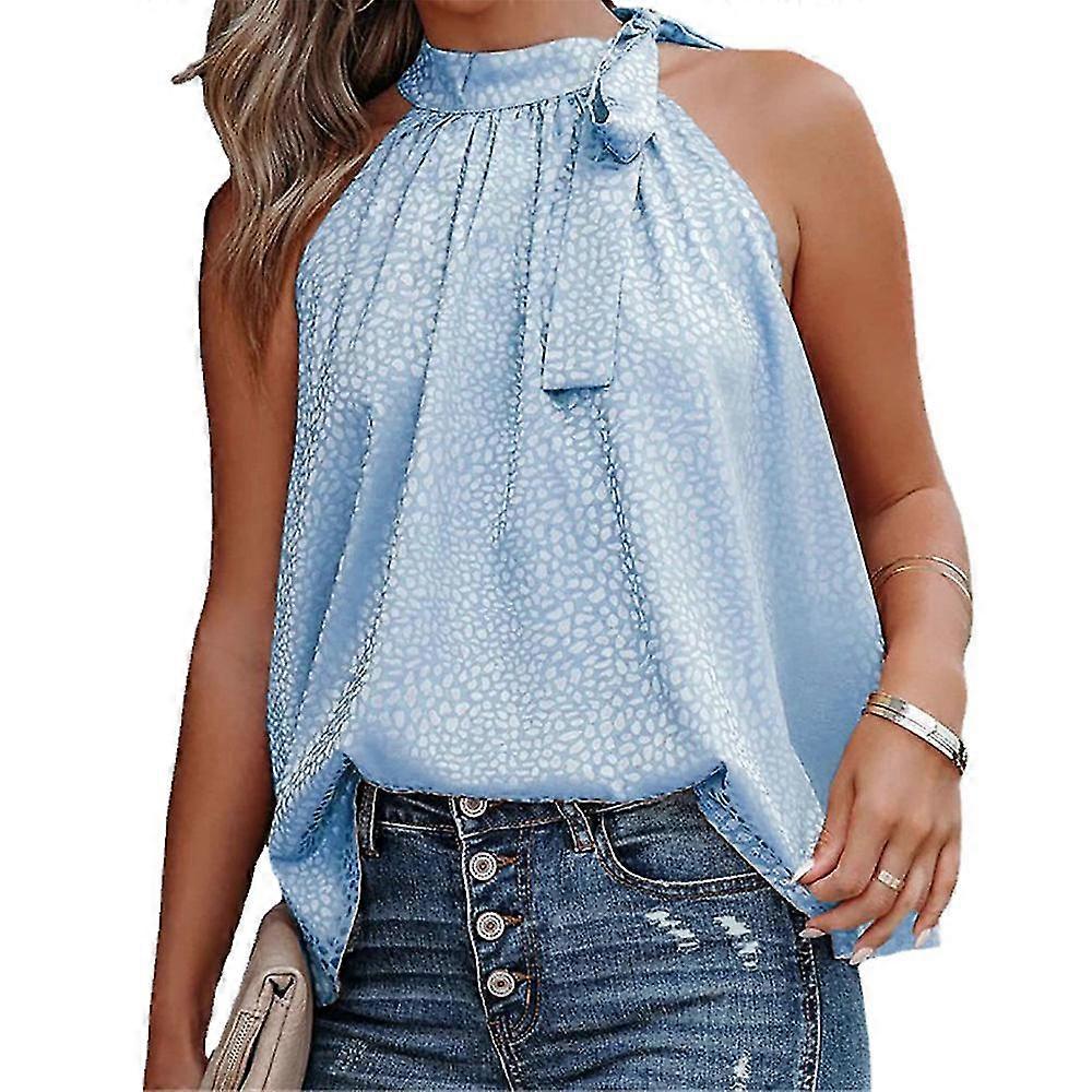 Women Summer Halter Neck Leopard Sleeveless Tank Loose Top