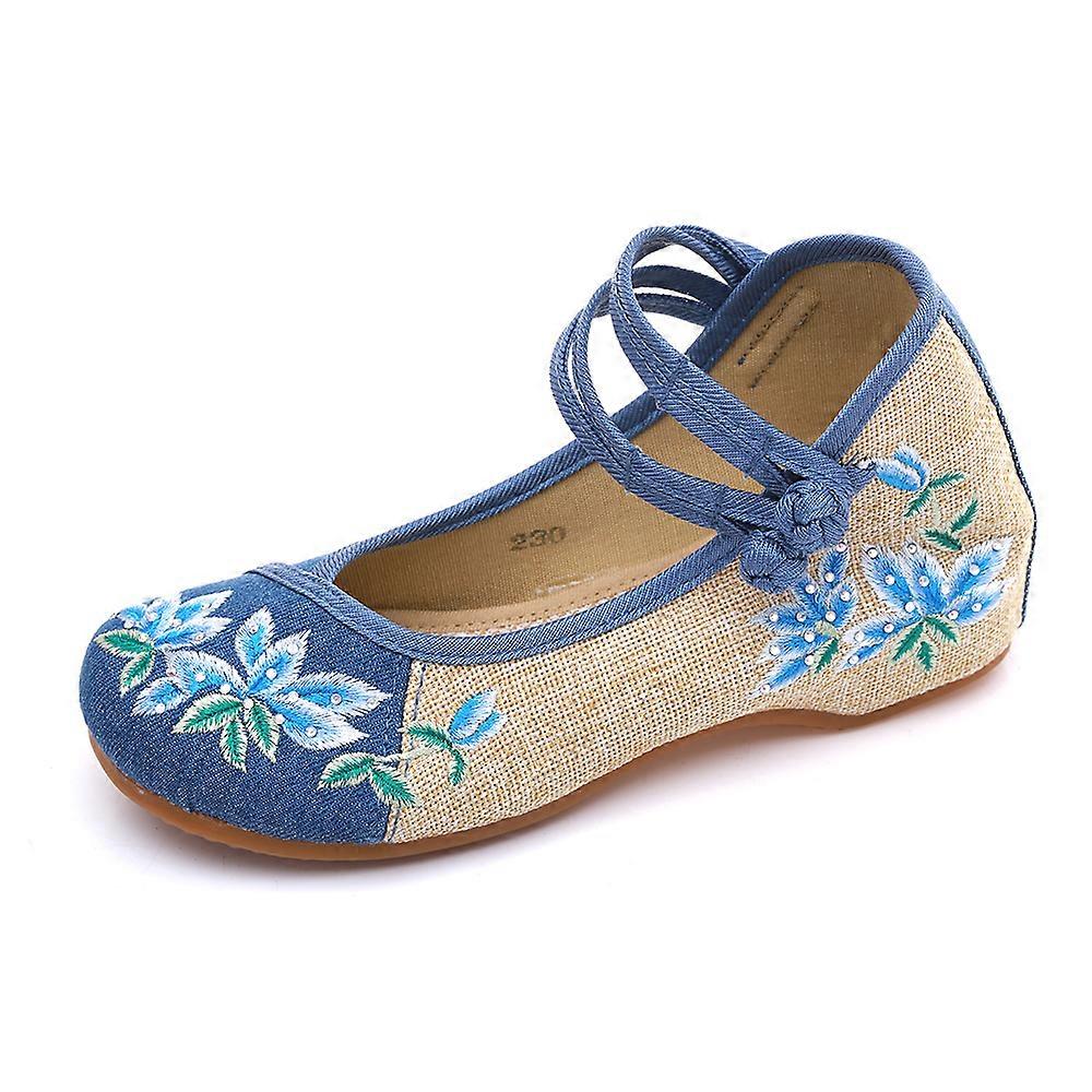 Women's Chinese Vintage Ethnic Embroidery Low Heel Flat Elevator Cheongsam Dress Shoes Romantic