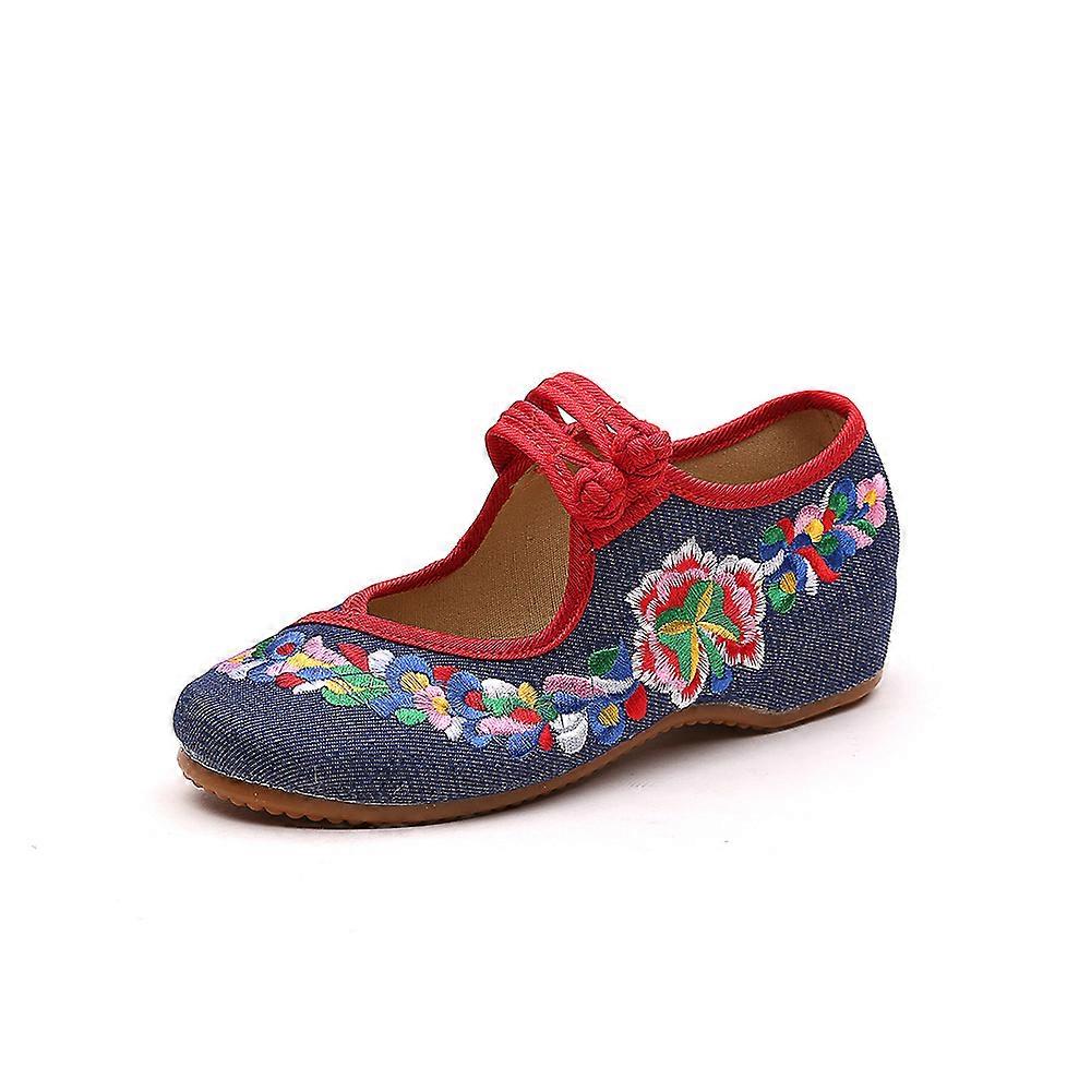 Women's Chinese Retro Ethnic Embroidery Low Heel Flat Elevator Cheongsam Dress Shoes Lotus Pond Moonlight