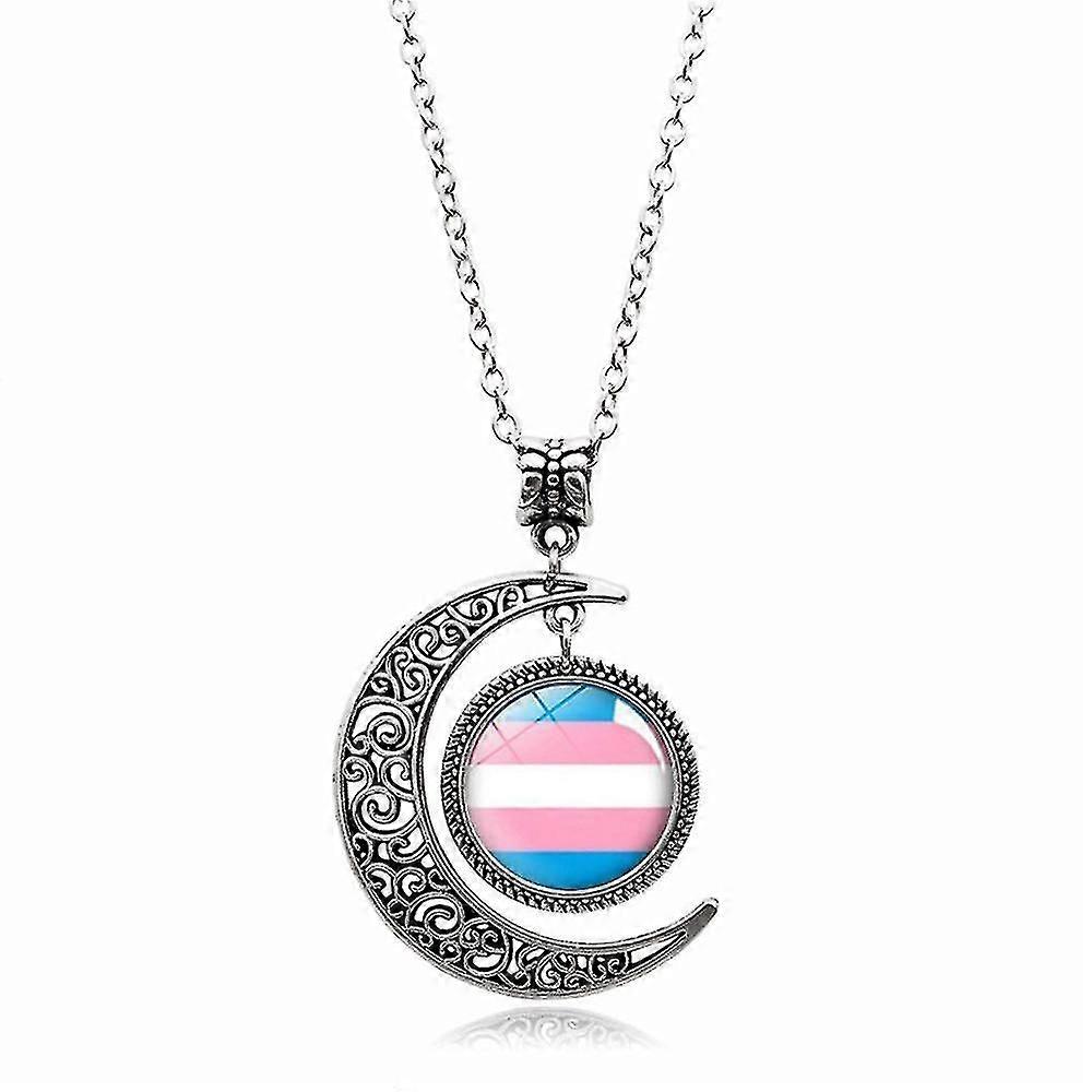 Women Moon Charm Rainbow Pendant Gay Pride Stuff-necklace Jewelry Gifts