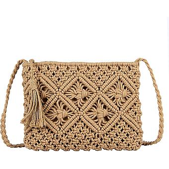 Womens Handwoven Crossbody Purse Summer Beach Straw Messenger Bag Woven Cotton Handmade Shoulder Handbag