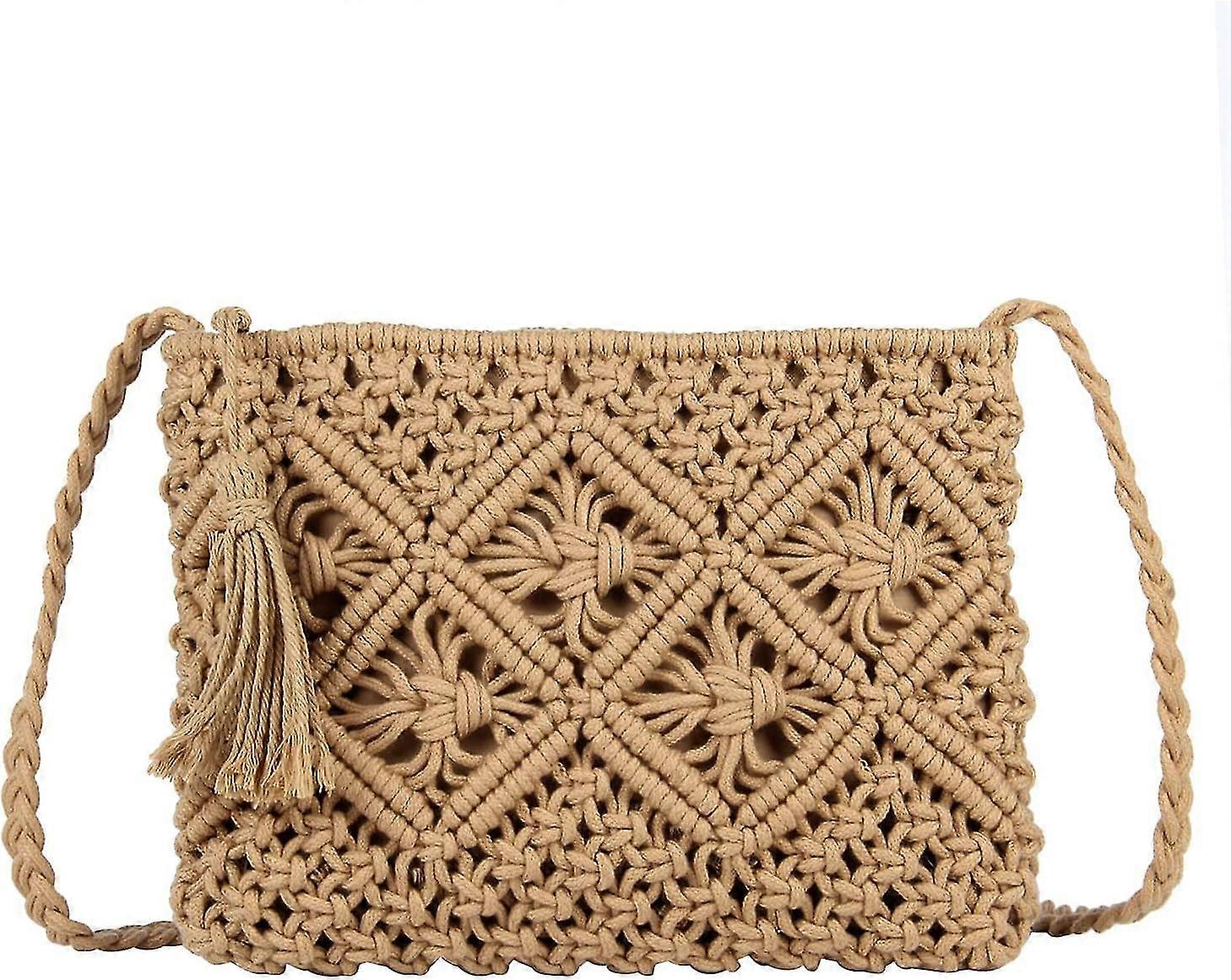Womens Handwoven Crossbody Purse Summer Beach Straw Messenger Bag Woven Cotton Handmade Shoulder Handbag
