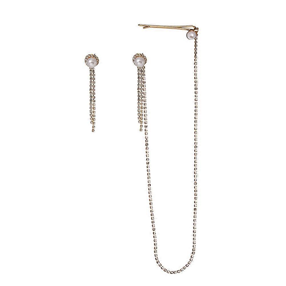 Women Elegant Faux Imitation Pearls Hair Clip Earring Hollow Geometric Hairpin Barrette(Gold)