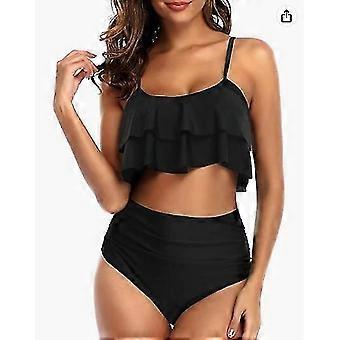 المرأة تصميم جديد قطعتين كشكش عالية الخصر بيكيني ملابس السباحة