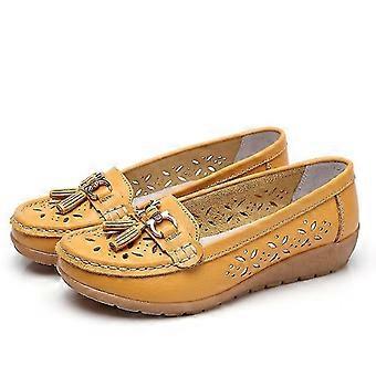 المرأة جلد حقيقي مع الكعب المنخفض زلة على أحذية مسطحة عارضة