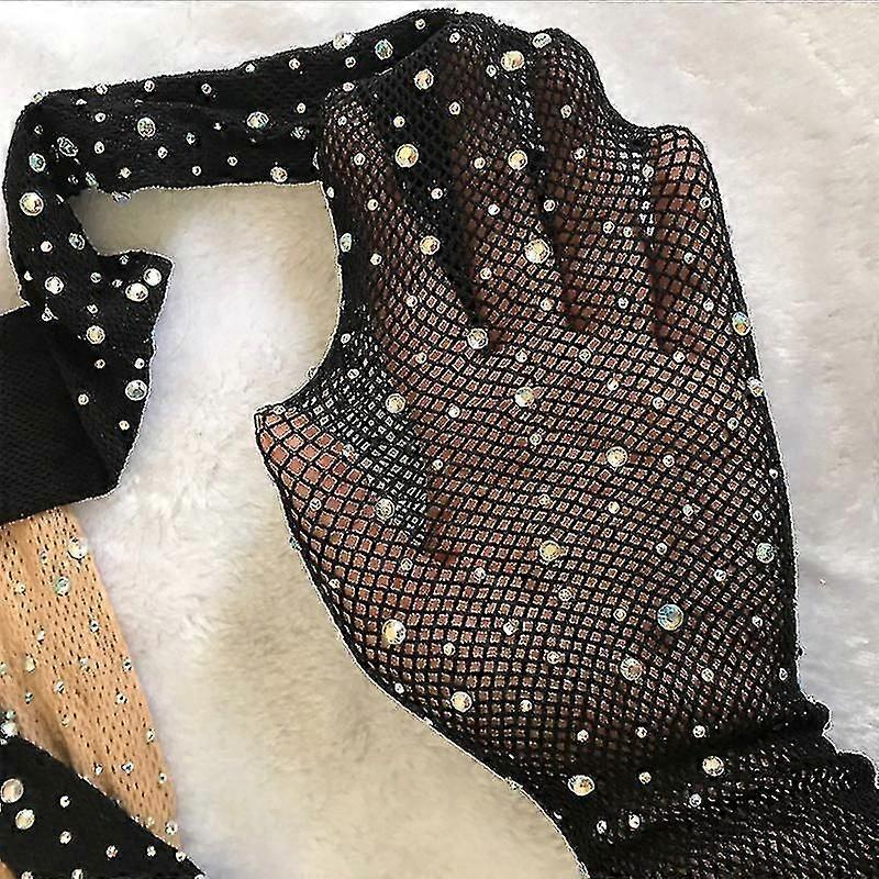 Women Rhinestone Fishnet Mesh Pantyhose Stockings Hollow Shiny Tights Party Club Wear