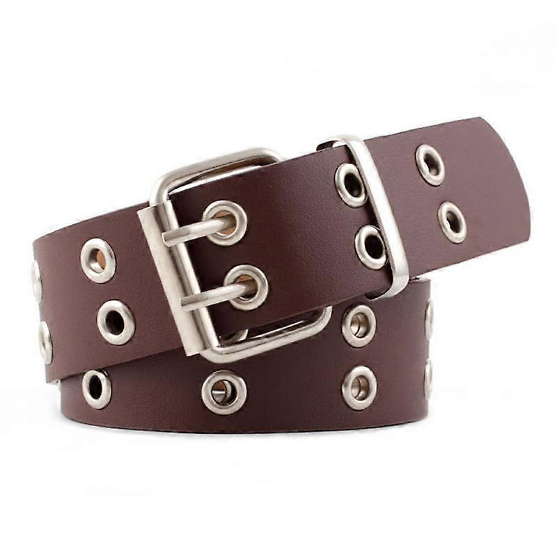 Women's Leather Belt Double Row Holes Belt Durable Sport Decoration Belt