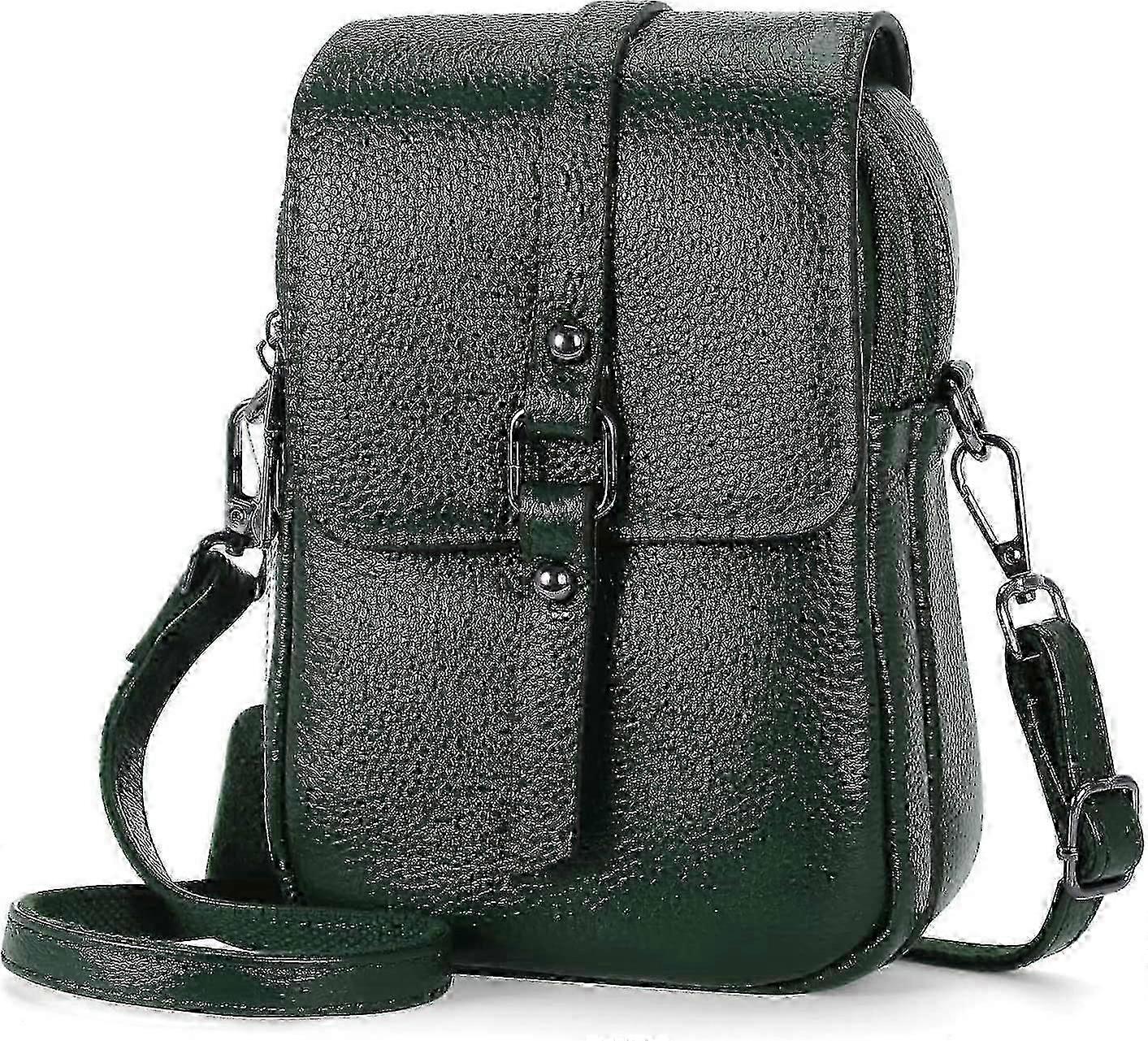 Women Phone Bag With Strap Genuine Leather Shoulder Bag Lightweight Double Zipper Phone Purse For Ladies, Girls(green)