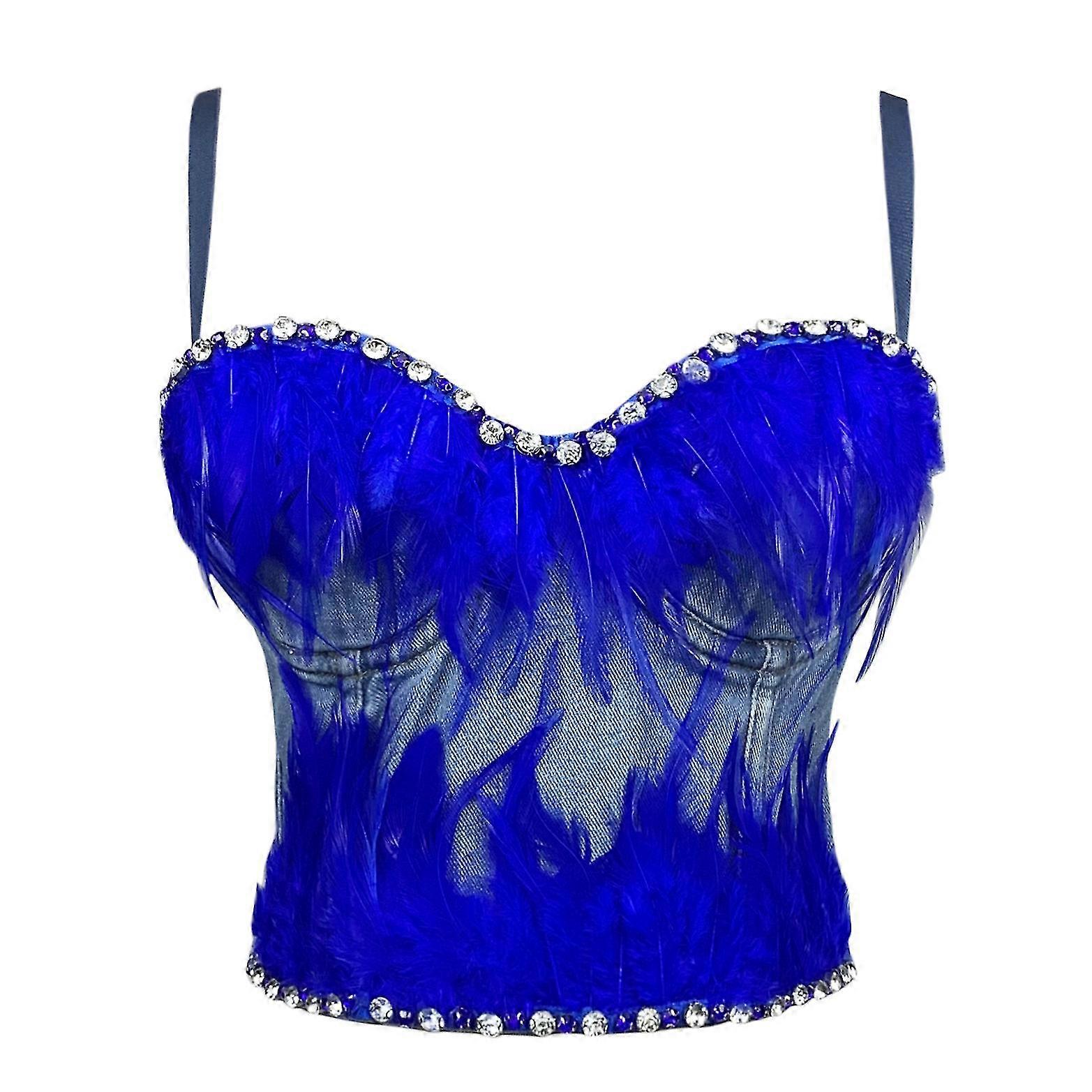 Women Bra Top Backless Off Shoulder Push Up Bling Crystal Stone Pearl Feather Tassel Pads Crop Tube Tank Tops